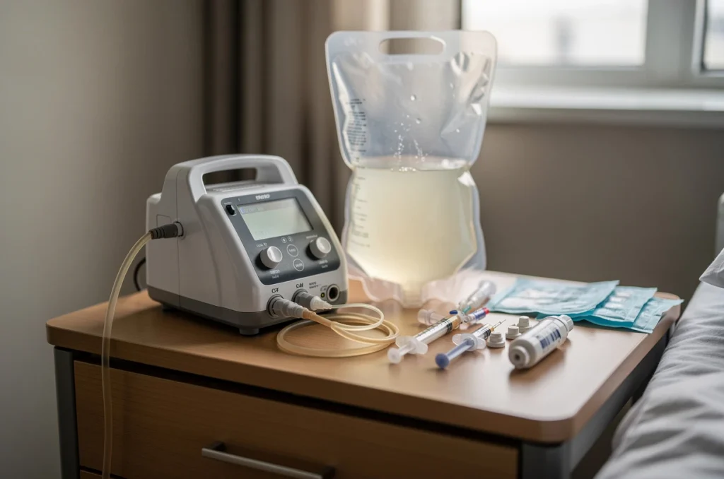 Une sonde entérale est un dispositif médical permettant d’introduire directement des liquides nutritifs dans le tube digestif. Selon la situation du patient, on distingue principalement la sonde naso-gastrique, placée par le nez jusqu’à l’estomac, et la sonde de gastrostomie, insérée directement dans l’estomac via une petite ouverture abdominale.